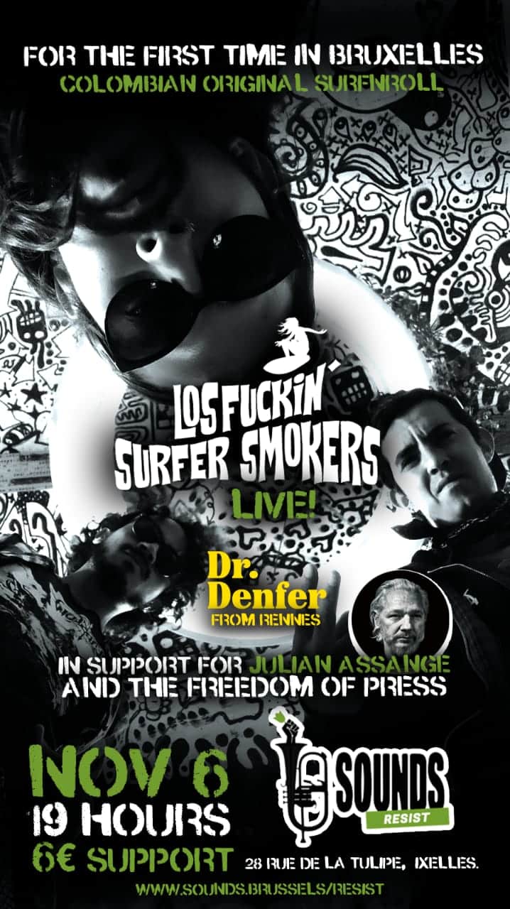 The music show advocates on exposure Julian Assange and the freedom of press that needs to be reminded, plus with the band there will be a poster exhibition with a compilation of designs that were part of the social outburst of colombia, where the freedom of press was affected by censorship and violence altogether.