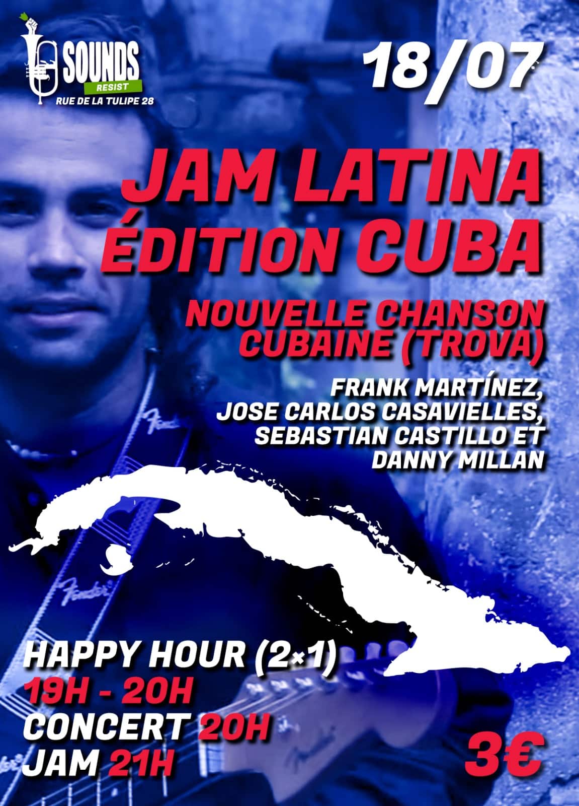 JOSE CARLOS CASAVIELLES – PERCUSIÓN FRANK MARTÍNEZ – GUITARE ET VOZ SEBASTIAN CASTILLO -GUITARRA Y COROS DANNY MILLAN – PERCUSIÓN