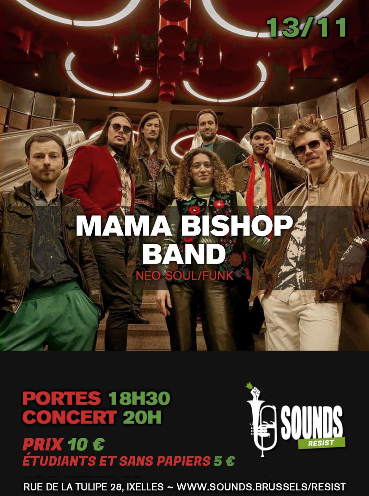 Il s’agit de la rencontre made in Brussels de 7 musicien.ne.s qui ont pour vision de créer une musique qui leur ressemble à travers les valeurs des 70’s : l’amour, la beauté et le vivant.