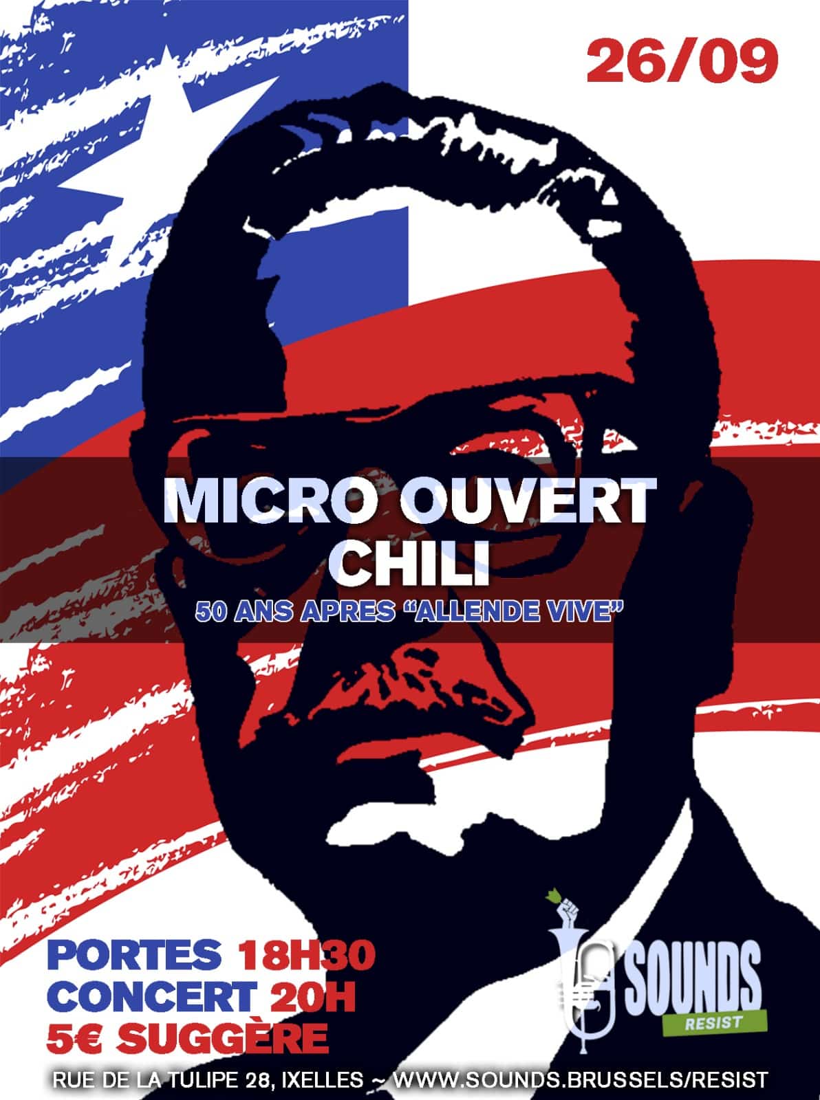 Vous avez envie de vous exprimer ? Alors n’hésitez pas à vous inscrire sur place pour prendre le micro et partager vos textes, vos chansons, vos poèmes ou vos témoignages sur le Chili. Vous pouvez aussi simplement venir écouter et soutenir les artistes qui se produiront sur scène.