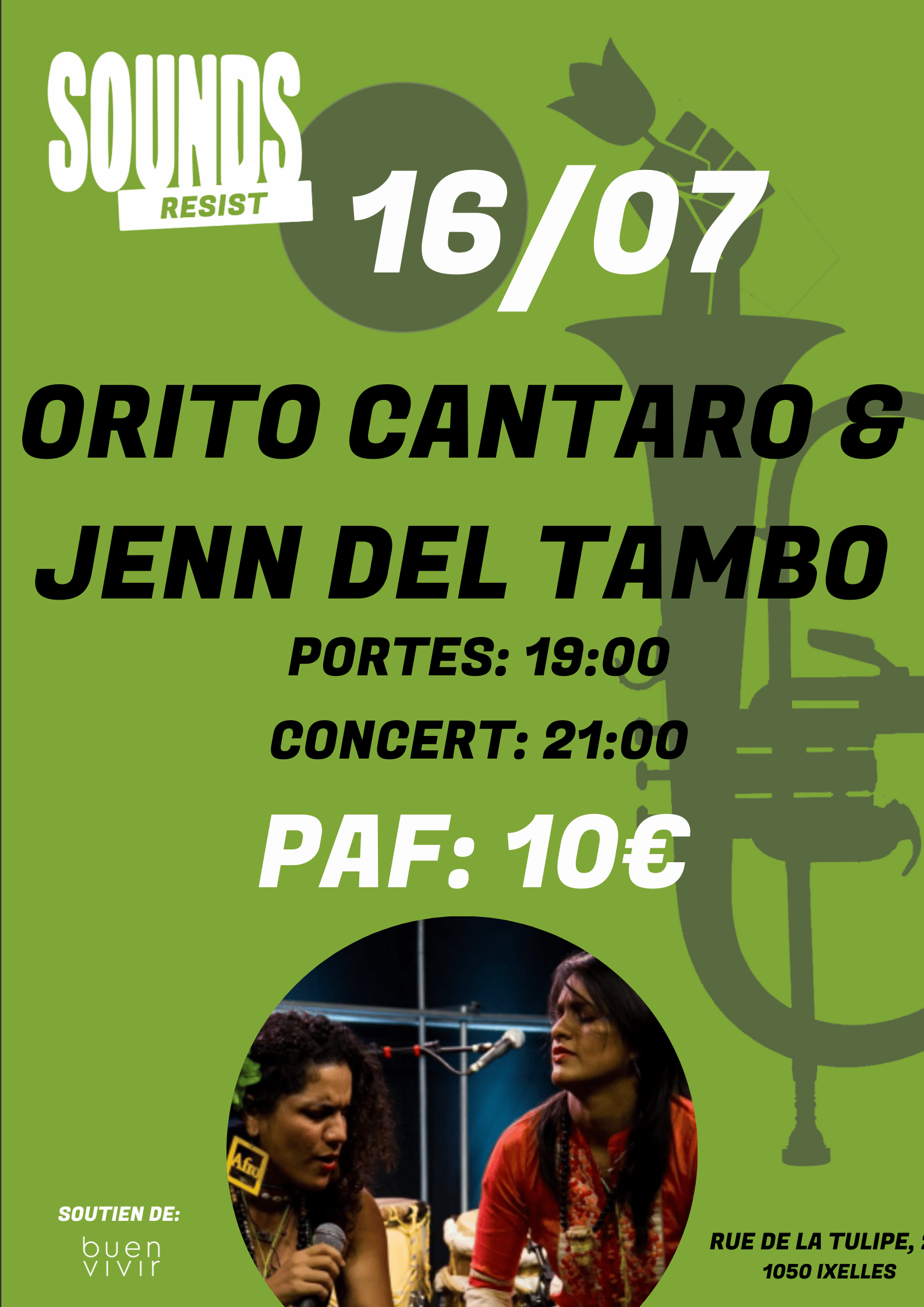 Orito Cantora et Jenn del Tambo forment un duo explosif de rythmes traditionnels caraïbéen et colombien, tels que la cumbia, la chalupa, le garabato, le mapalé et le bullerenque, qui est utilisés comme moyen d’émancipation des femmes.