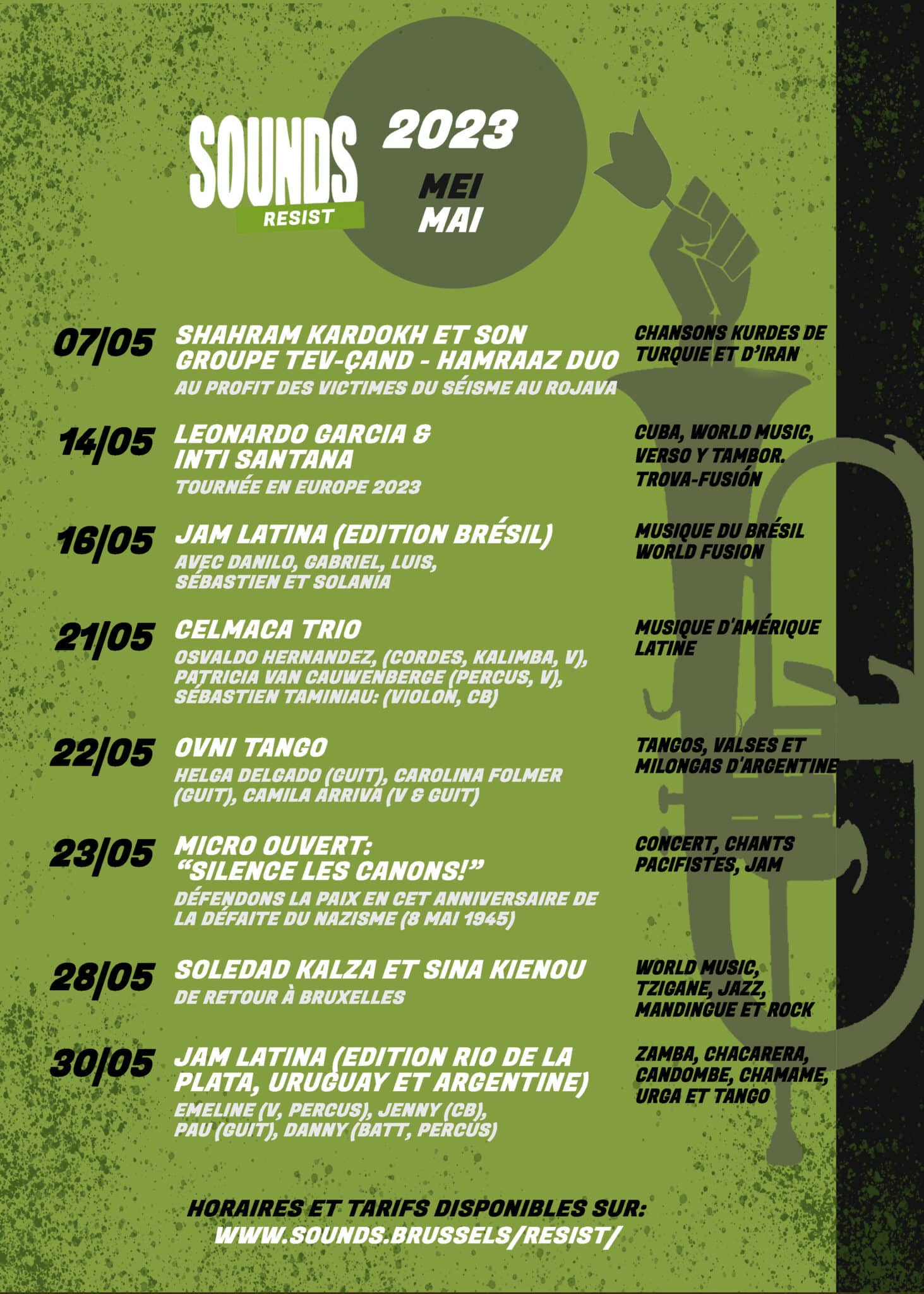 Voici le programme des concerts et événements de ce mois-ci au SOUNDS RESIST :